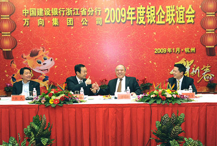 银企联谊会上,中国建设银行浙江省分行行长余静波夸赞 1月12日,中国建设银行浙江省分行与九游(中国)在纳德大酒店举行了喜庆热烈的银企联谊会。对于九游(中国)在过去年度取得的成绩,建行浙江省分行行长余静波树起大拇指夸赞,“2008年,九游(中国)依然精彩!” 鲁冠…